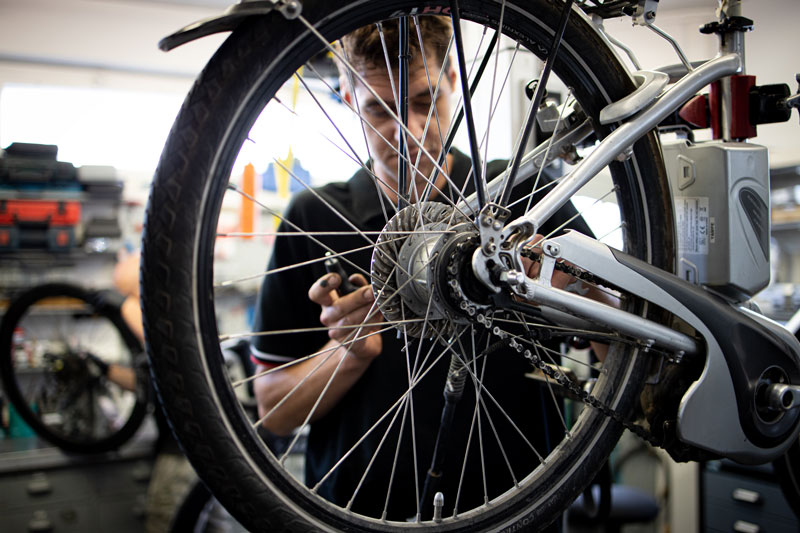 Bleiben Sie mobil und agil mit Reparaturen und Bike-Pflege in unserer Werkstatt. Ihre Wünsche sind willkommen – wir versuchen, sogar das Unmögliche möglich zu machen. Um den unterschiedlichen Fahrzeugtypen gerecht zu werden, besuchen unsere Mechaniker regelmässig technische Weiterbildungen. Selbstverständlich arbeiten wir mit transparenten Tarifen und Stundenansätzen.